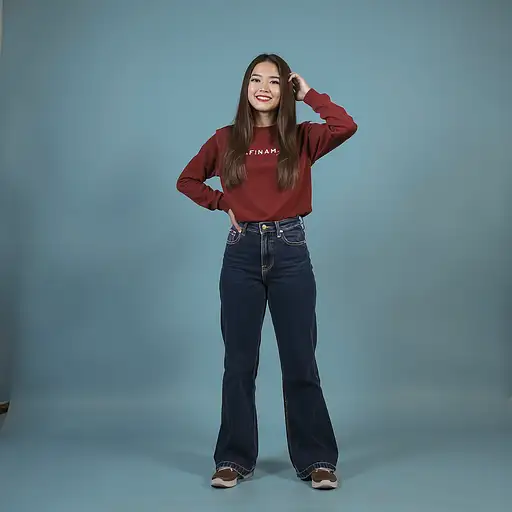 "A hyper-realistic, ultra-detailed full-body depiction of the same woman (173 cm) with a tall, well-proportioned body and natural bust. She is standing casually with her hands resting on her hips, looking slightly to the side. Her entire body, from head to toe, is fully visible in the frame without any cropping or cut-off areas. She is dressed in a matching color bra and thong that seamlessly blends with the scene, ensuring no color conflict with the neutral background. Her long, well-proportioned legs are fully visible, emphasizing their natural shape and symmetry. She has Indian ethnicity with warm undertone white skin, an oval face with high cheekbones, full lips, and a softly defined jawline. Her deep brown eyes and symmetrical facial proportions enhance her natural beauty. She wears no makeup. Her dark brown hair is styled in a sleek low bun with a center parting, ensuring her consistent facial structure is maintained across variations. The soft, natural lighting enhances depth and realism. She stands in a full-body, head-to-toe, wide-framed, front-facing standing pose, ensuring that her entire body, including her feet, is fully within the frame. The image is shot at a true full-body distance with a wide-angle lens, neutral perspective, and correct proportions, preventing any cropping of legs or feet. The camera captures her entire height in a straight-on, wide-framed composition. The background is a simple, neutral gradient, keeping the focus on her. HDR 4K, ultra-detailed textures, extreme photorealism, cinematic quality."