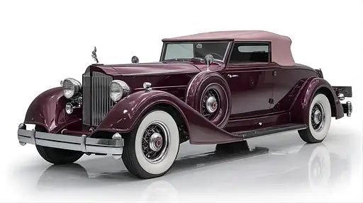 4 months ago 1934 Packard Twelve convertible, rendered in deep maroon, showcasing its long hood, luxurious chrome grille, and elegant whitewall tires, isolated on a white background car19Cars 0 35