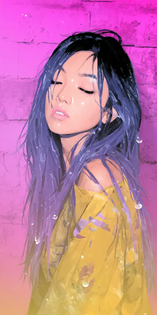 2 days ago a girl with blue hair with eyes closed, in the style of the stars art group (xing xing), yellow and orange, water drops, romantic illustrations, intense lines, gongbi, loose paint application --chaos 75 --ar 1:2 --sref 1817316478 --profile x3fq9up --stylize 750 NorthmoorAI 1 13