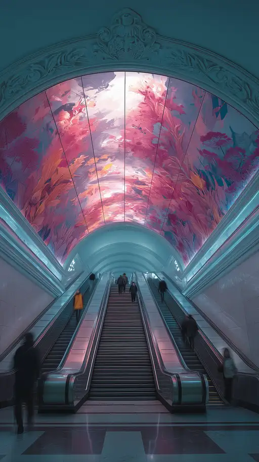 8 days ago high resolution photo, modern subway escalator, neo-baroque, neon pink and aquamarine, fast passers by, expressive brushwork, ultra-detailed, dynamic composition, rich detailed --ar 9:16 --raw --stylize 200 Grayve PRO 1 31