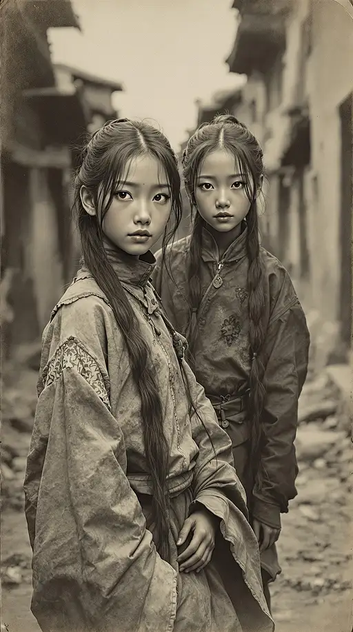 An ultra-realistic, full-body portrait of Kitana from Mortal Kombat as a time-traveling warrior, wearing a sleek mask that seamlessly matches the aesthetic of her suit. A finely crafted sword is strapped to her back, blending perfectly with her battle attire. She exudes a mix of ancient grace and futuristic power, with a contrasting temporal palette. A tactical belt adorned with weapons and accessories enhances her warrior presence. She wears segmented armor in polished bronze and shimmering sapphire blue with subtle purple accents, featuring textured battle-worn engravings that blend tradition with cyber-enhanced technology. Her face radiates both wisdom and strength, with an intense, battle-hardened gaze and deep gold-amber eyes that reflect her mastery of time. Her long, braided hair, a mix of deep brown and metallic silver, is adorned with ancient bronze beads and subtle futuristic implants. A cyber-dragon tattoo runs along her side, from her hip to her torso, infused with glowing circuitry and mystical energy, seamlessly merging organic and mechanical elements, symbolizing her warrior spirit and connection to time itself. The background is a swirling vortex of time, where ancient ruins and futuristic cities merge into a chaotic yet mesmerizing landscape, reinforcing her temporal nature. Dramatic, cinematic lighting casts both sharp and soft shadows, highlighting the fluid power of her stance. Advanced digital artistry techniques, including temporal distortion effects and ray tracing, enhance the hyper-realistic details. Rendered in UHD resolution, the image presents Kitana as a powerful guardian of time, blending elements of steampunk and futuristic photorealism. A lone, floating pocket watch with frozen hands drifts in the scene, subtly reinforcing the mystery of time itself.
