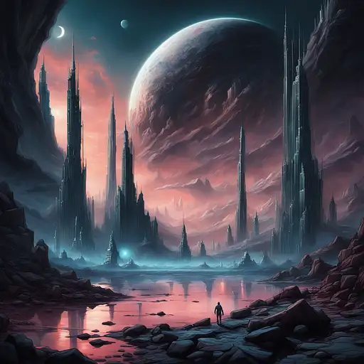 almost 2 years ago Create an image with alienmoon in a visually striking and perfectly balanced composition, reminiscent of a scene from a futuristic fantasy film. Channel the artistic influence of Ralph Horsley, infusing the piece with his signature blend of intricate details and gauzy atmospheric landscapes. Perfect composition, futuristic fantasy movie style, Ralph Horsley-inspired, atmospheric gauziness, highly detailed, captivating, dreamlike, immersive. Duffman 1 81