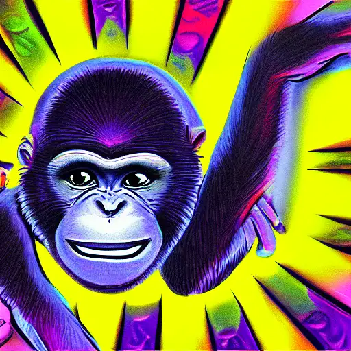 Stars, planetary rings, and neon sigils orbit around her, whispering secrets of the universe through flickering, glitch-like trails of stardust. Her flowing robes shift like a neon aurora, blending electric violet, luminescent turquoise, and glowing pink gradients, merging her with the vibrant energy of the cosmos. The background pulses with retro-futuristic hues, where glowing portals to higher consciousness flicker like neon city lights, bending space and time.