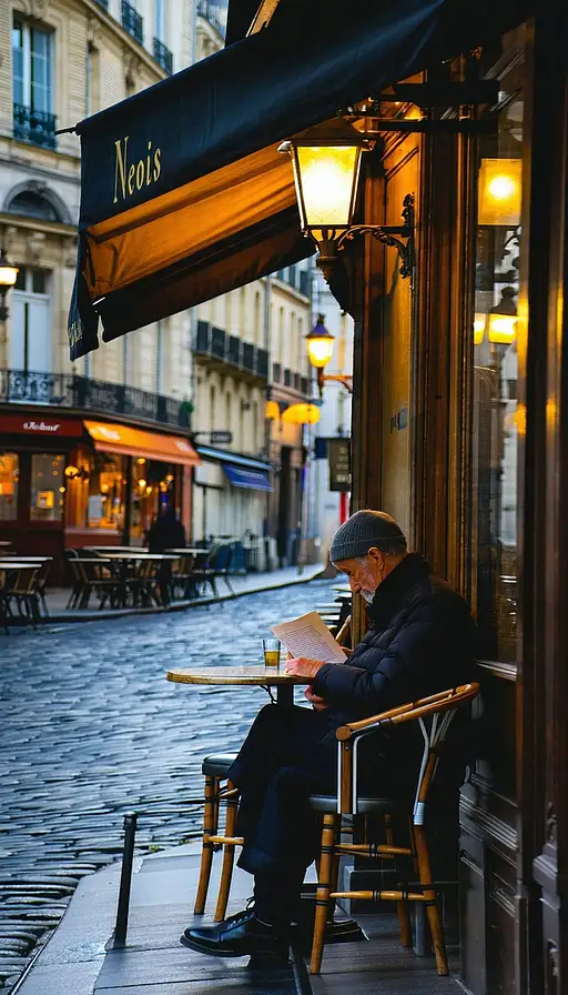 7 hours ago A vintage Parisian cafe scene at dusk, with gas lamps casting a warm glow on the cobblestone street. A solitary figure sits at a small table, reading a book. The atmosphere is quiet and contemplative, rendered in the style of neo-impressionism with a focus on light and color, evoking a sense of nostalgic charm. hb6e22d44c224 0 2