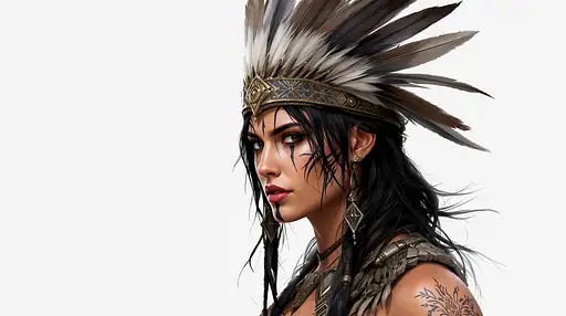 4 days ago A female warrior with dark hair and facial tattoos, wearing a headdress of feathers, full-body portrait, in the style of digital art. --ar 1:2 --style raw --v 6. 1 in the background a wood b8fd5e3a917 PRO 0 8