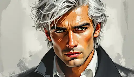 4 months ago Vintage fashion poster of an elegant man with silver hair, silver eyebrows, drawn in the style of Paul Kenton, cool tones, featuring bold brushstrokes and muted colors, dynamic yet sophisticated, confident gaze and flowing attire, sophistication, timeless beauty. --ar 35:64 --stylize 750 Laurelle 1 25