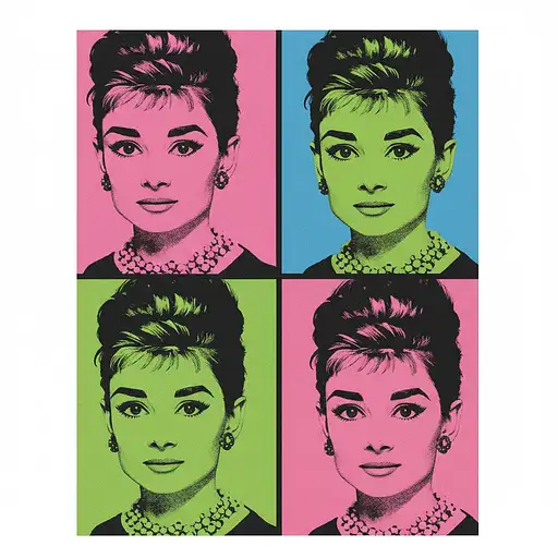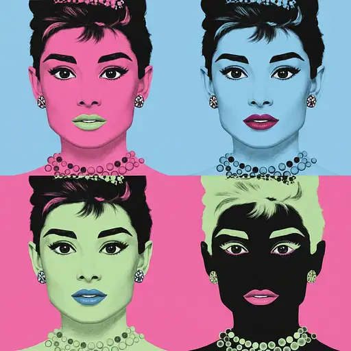 17 days ago Audrey Hepburn, in the style of Andy Warhol, simple background, pink, green, blue, and black colors --ar 1:2 --stylize 750 add3e844943 0 20