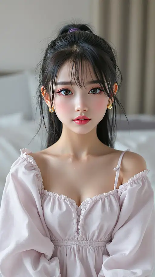 korean sweat girl, A hyperrealistic, fine art black-and-white portrait capturing an introspective moment, with a woman gazing thoughtfully downward, her hand gently resting in her rich, dark hair. Her skin tone is subtly deeper, adding warmth and contrast to the scene. She is partially draped in a loose-fitting fabric that softly contours her form, bringing depth and elegance to the composition. Soft lighting casts delicate shadows, emphasizing her natural features and creating a serene, contemplative expression, suggesting a quiet moment of reflection. In the background, a cozy cabin room adds warmth to the image, with wooden walls and rustic textures that evoke a sense of intimacy and comfort. timeless aesthetic, focusing attention on her graceful form and introspective mood. A refined, evocative piece that captures both elegance and emotional depth, suitable for fine art photography or gallery display.wet,20yo,fullbody,Photorealistic portrait of a woman with a delicate, She has a short, choppy light chestnut brown haircut with uneven bangs that frame her expressive, slightly downturned eyes. Her pale skin is accentuated by the contrast of light hitting one side of her face, leaving the other in shadow. vulnerable expression. The background is silhouetted, creating a dramatic and mysterious vulnerable expression. The background is silhouetted, creating a dramatic and mysterious atmosphere,(masterpiece, best quality, ultra-detailed, high resolution) , beautiful and cute,soft and delicate facial features, large expressive eyes, fair and smooth skin, natural makeup, wearing a stylish outfit, soft lighting, (bokeh background) , gentle and warm smile, long straight black hair, youthful and elegant, (photo-realistic:1.3) , soft pastel tones, natural beauty,editorial photography, front shot, dimly lit room with a hazy atmosphere, capturing a gorgeous woman model lounging on a vibrant orange color couch, staring to camera, gaze, wearing with red tie, holds a glowing cigarette to lips, creating a trail of deep smoke that wafts around her, illuminated by a beam of light from an unseen source off-camera, light filters through the deep smoke, casting dynamic patterns and giving the scene a moody, dark atmosphere, cinematic quality resolution, air of contemplation in hers posture and the ambient glow contributes to the intimate and introspective mood of the portrait, high contrast, glamorous, rich details --ar 9:16 --style raw --personalize c84qxg1 --stylize 200 --v 6.1