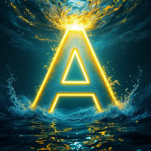 6 months ago 3D render of the letter [A], periwinkle and canary yellow color blend, under the water, swirling water currents, bright light emanating from center, high contrast, eerie atmosphere, photorealistic rendering, rippling water surface, liquid effect, hyper-detailed water textures, dramatic lighting, 8K resolution --ar 9:16 --style raw --personalize c84qxg1 --v 6.1 2dea0afa147 0 20