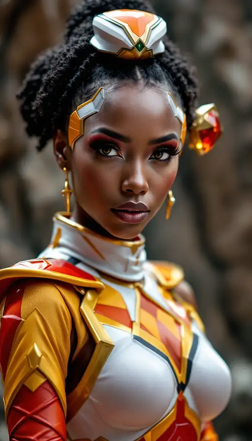 The image is rendered in 8K ultra-realistic detail with lifelike textures, ensuring precise hair strands, realistic skin texture, and natural light reflections in her eyes. The camera shot is a full-body vertical portrait, slightly low-angled to enhance her presence and elegance. The pose is natural yet stylish, with one hand gently resting on her hip and a subtle, confident tilt of her head.