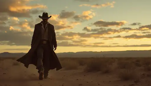 9 months ago Estilo tipo western. Paisaje: desierto al atardecer. Un hombre en toma larga, long shot, camina en el desierto. Es importante que aparezca en toma larga, long shot. No se le ve la cara. 597297a32d0 PRO 1 19