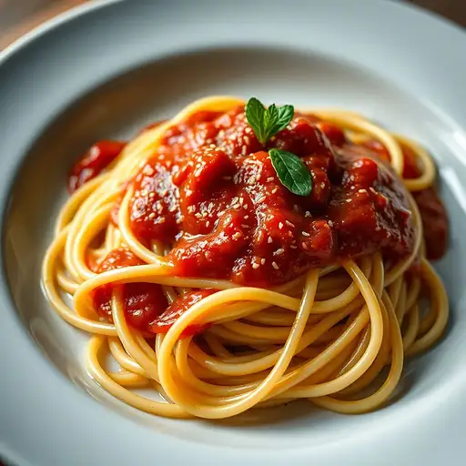6 months ago a plate of spaghetti with marinara sauce, , photorealistic, in the style of high quality food photography --chaos 20 --ar 1:2 58670f86850 0 30