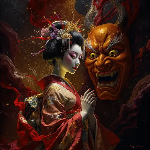Lord Shiva: In this scene, Lord Shiva is depicted with a powerful, almost otherworldly presence. His muscular, blue-toned form radiates strength and wisdom, but his face shows a pained yet determined expression, as he consumes the poison — his throat is highlighted, with the dark venom swirling within. The poison is visually dynamic, appearing like a swirling dark mist or liquid, reflecting light and darkness simultaneously. The physical act of drinking the poison showcases Shiva’s fearlessness, embodying both sacrifice and protection of the cosmos. His trident, glowing with divine energy, rests beside him, adding a futuristic and detailed metallic sheen that enhances the tension of the scene. His long, flowing hair swirls around him, illuminated by the dramatic lighting from the surroundings. Parvati: Parvati is depicted as the epitome of grace and maternal strength. She stands in front of Shiva with a concerned yet serene expression, her beauty radiating in a celestial way. Her robes, flowing and elegant, are made of delicate textures that fuse ancient patterns with futuristic metallic highlights. She reaches out to stop Shiva from consuming the poison further, her hand outstretched in a gesture of love and protection. The robe material catches the divine light, giving a sense of ethereal fluidity. Her eyes, filled with both love and concern, reflect the intensity of the moment—ready to stop Shiva from the pain, yet fully aware of his ultimate sacrifice. The Poison: The poison is a key focal point of the image, swirling in a dark, almost liquid form, floating in front of Shiva’s mouth. It glows ominously with shades of green and purple, an eerie contrast to the glowing blue of Shiva’s aura. The poison’s presence represents the danger and chaos being swallowed by the god, but also hints at the immense power and strength of Lord Shiva to endure it. The material rendering of the poison using Substance Painter gives it a realistic texture, creating depth and a sense of volatile energy. Background: The environment around them would blend gothic fantasy and futuristic realism, a surreal celestial landscape that evokes both ancient and future worlds. Towering, crumbling gothic temples, black stone ruins, and glowing neon accents stretch into the distance, illuminated by cosmic energy. The sky is dark and stormy, swirling with supernatural forces—cosmic winds, lightning, and the distant rumble of divine power. Some futuristic elements, like holographic constructs or glowing symbols, are embedded within the crumbling stone, connecting the divine with the technological. Lighting and Atmosphere: The use of V-Ray tracing would bring this composition to life, creating dramatic lighting and shadows. The poison’s dark mist contrasts with the luminous blue aura around Shiva, while Parvati’s soft, radiant light emanates warmth and protection. The play of light and shadow would create depth, accentuating the figures and the intricate details of their forms. Her robes, Shiva's body, and the poison would all shimmer with reflective qualities, creating a sense of dynamic energy. Unreal Engine 5 rendering would provide incredible realism, particularly in the textures of the surrounding environment. The background could feature distant galaxies, supernatural elements, and ancient temple ruins that would add layers of visual complexity and depth. The textures of both the futuristic and gothic elements in the environment would be meticulously rendered, making each stone, hologram, and light seem as though it exists in a tangible, living world. Substance Painter Texturing: This digital tool would be used for the fine details: Shiva’s skin and his clothing, Parvati’s robes, the poison, and the metallic elements of their accessories would all have unique, realistic textures. Shiva’s blue skin would have a smooth, divine sheen, while Parvati’s robes would have soft, flowing textures that reflect light in an almost liquid way. The poison itself would look dangerous and volatile, with rich textures that suggest it is both magical and toxic. Emotional Impact: This image would be emotionally powerful, capturing both the tragic and heroic essence of the myth. It would evoke a sense of divine sacrifice and love, as Shiva consumes the poison for the sake of the universe, while Parvati’s concern for him highlights the emotional depth of their relationship. The balance of gothic and futuristic realism would create a timeless, otherworldly feel, pulling the viewer into a visual and emotional experience.