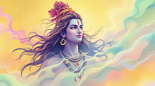 9 months ago "Create a vibrant illustration of Lord Shiva, where his cosmic energy is depicted as a flowing cascade of pastel colors. Incorporate gentle pink, light lavender, and mint green energy trails against a soft yellow cosmic background, highlighting his role as the controller of universal forces." deepthi 0 33