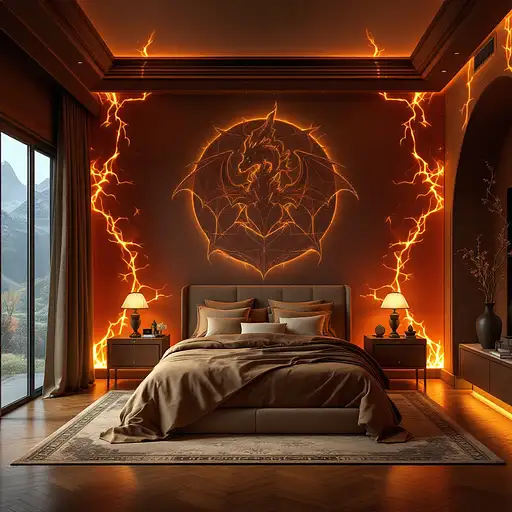 This bedroom transcends the ordinary, exuding an atmosphere of refined elegance, dynamic warmth, and the powerful essence of Charizard, creating a space that feels like a living, breathing tribute to both fantasy and luxury. Every element within the room is meticulously chosen and thoughtfully designed to invoke the formidable majesty of Charizard, while enveloping the space in an aura of high-end sophistication. It feels as though you’ve stepped into a dream, where the boundary between fantasy and fine craftsmanship disappears, leaving behind an experience that is nothing short of captivating.