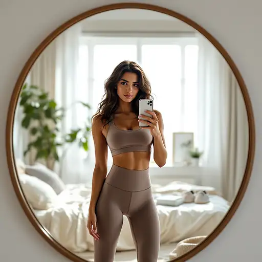 A stunning young woman with vibrant, tousled short blue hair, exuding a confident and playful cyberpunk-meets-streetwear aesthetic. She wears large, round glasses with a subtle futuristic tint, framing her striking, expressive blue eyes. Her lips are slightly parted, giving her a captivating and inviting expression. She has flawless, sun-kissed skin with a subtle glow, and a black leather choker with a metallic ring accentuates her neck. She is dressed in a form-fitting, sporty blue crop top with black harness-style straps and metal rings, enhancing her edgy and futuristic look. Over this, she wears a slightly oversized blue jacket, unzipped and draped casually off her shoulders. Her toned, athletic physique is emphasized by the crop top, revealing defined abs. On her head, she has a pair of stylish black goggles with reflective lenses, pushed up into her hair. Her left arm is raised, with her fingers lightly tousling her hair, while her right arm is relaxed. The background is a sleek, futuristic cityscape with a mix of warm and cool lighting, giving the scene a dynamic cyberpunk feel. Bright ambient lights and lens flares add depth, making the atmosphere feel energetic and immersive. The soft bokeh effect in the background ensures the focus remains on the character, enhancing the overall cinematic quality of the image.” Additional Refinements: • Rendering Style: Hyper-realistic with cyberpunk and cinematic lighting • Lighting: Mix of warm and cool tones with soft neon reflections • Color Palette: Cool blues, deep blacks, and warm golden highlights • Camera Angle: Tight-medium shot, slightly low angle for emphasis • Depth of Field: Shallow (sharp focus on subject, blurred futuristic background) • Composition: Balanced, with the subject positioned slightly off-center for a dynamic pose