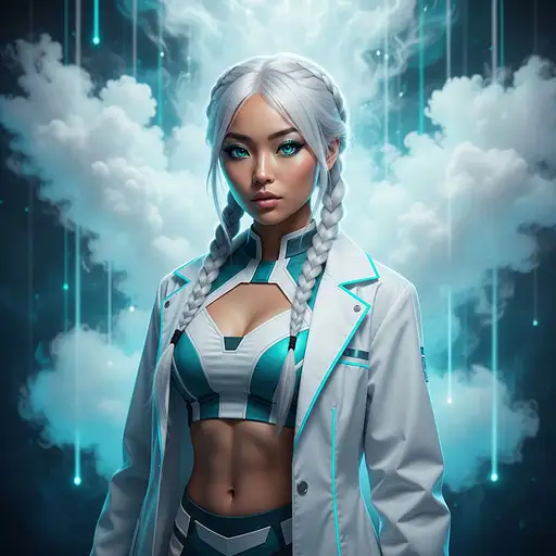 Create an ultra-detailed, vibrant, and photorealistic action portrait of a beautiful young East Asian woman as a professional "race queen" or "grid girl" at a motorsport event. Overall Style & Mood: Aesthetic: The image should look like a high-energy, professional photograph from a live racing event, similar to what you'd see in a sports magazine or an automotive commercial. Tone: The mood is bright, cheerful, and exciting, capturing the dynamic atmosphere of a race day. Subject & Appearance: Model: A real-life model in her early 20s with a radiant and friendly personality. She has large, warm golden-brown eyes and a bright, genuine smile. Hair: Her hair is a short, stylishly messy, dark navy blue or black bob. Pose: She is leaning casually against the side of a race car, looking directly at the camera. Ultra-Detailed Realistic Outfit: Theme: A coordinated, professional-looking race queen uniform. Bandeau Top: A form-fitting bandeau top made of a high-sheen, lime-green spandex or similar performance fabric. It features black side panels and a thin white border along the top edge. Critically, the word "Razing" is printed across the front in a stylish, white, italicized font. Cropped Jacket: A short-sleeved, cropped racing jacket worn open. It is made from a white, high-tech performance fabric with a subtle texture. The jacket features a high collar with lime green lining, and black and lime green piping and accents. There should be small, realistic sponsor patches embroidered or printed on the sleeves. Mini Skirt: A matching, very short, white mini skirt made from the same performance fabric as the jacket. It has black and lime green vertical stripes along the sides, continuing the design from the jacket. Stockings: She wears opaque, white, thigh-high stockings. Environment & Setting (Most Critical Elements): Location: The scene is the pit lane or the side of a real, professional racetrack on a bright, sunny day. Race Car: She is leaning against a realistic, white GT-class race car. The car is covered in authentic-looking sponsor decals and livery, featuring the same lime green and black color scheme as her outfit. Background: The background should be slightly out of focus but clearly identifiable as a racetrack. Key elements include the grandstands filled with a blurred crowd of spectators, large red and white sponsor banners, and the race track itself. Sky: The sky is a brilliant, clear blue with a few fluffy white clouds. Lighting & Photography Style: Lighting: The scene is illuminated by bright, direct midday sunlight. This should create crisp, defined shadows, make the vibrant colors of her outfit and the car pop, and add a healthy glow to her skin. Focus & Depth of Field: The photograph is shot with a shallow depth of field (emulating a prime lens). The focus is tack-sharp on the woman, making her the undeniable center of attention. The race car is slightly less sharp, and the grandstands and crowd in the background are beautifully blurred. Resolution: Render in 8K to capture every realistic detail, from the texture of her uniform's fabric to the sponsor decals on the car and the energy of the crowd.