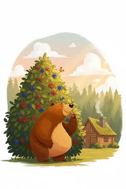 5 days ago Make the bear in the image pick a berry from a berry bush, with a small wooden house behind him, a green forest in the background, and a morning atmosphere. c1fcf191437 0 6