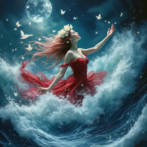 Uma pintura a óleo que combina o Impressionismo, com pinceladas soltas e foco em luz e cor, e o Expressionismo, com ênfase em emoção e intensidade dramática. No primeiro plano, uma princesa indiana elegante, sentada ou em pé, com um sari dourado e azul escuro bordado com padrões florais, pintado com pinceladas impressionistas suaves que capturam a luz refletindo no tecido. Ela usa joias brilhantes (brincos longos, pulseiras, adorno na testa), e sua expressão, pintada em estilo expressionista, é misteriosa e introspectiva, com traços ousados e cores contrastantes (olhos escuros profundos e tons quentes no rosto). Ao redor dela, pétalas de flores espalhadas no chão. Ao lado da princesa, um vaso ornamentado com motivos persas em tons de ouro, safira e esmeralda, contendo flores exuberantes (brancas, cor-de-rosa, laranjas), pintadas com pinceladas impressionistas que sugerem movimento e luz. No fundo, um padrão floral étnico brilhante, com detalhes rendilhados e filigranados prateados-brancos, criando uma textura mágica de conto de fadas, como uma tapeçaria viva, em estilo impressionista com cores vibrantes (vermelho, laranja, azul). Um topiário mágico com arabescos persas surge sutilmente ao lado do vaso, adicionando um toque místico. A paleta de cores mistura tons quentes (laranja, dourado, rubi) e frios (azul, esmeralda, prateado), com luz suave destacando a princesa como ponto focal e o fundo vibrando com emoção expressionista.in the style of Aubusson tapestry --niji 6