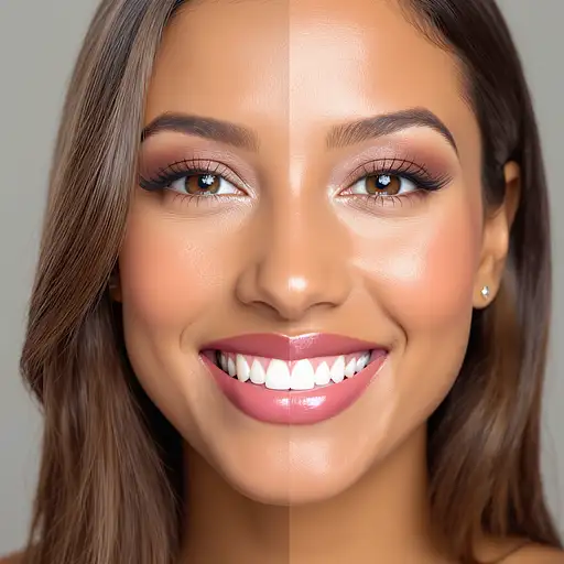 * **Colores y Tono:** Paleta de colores suave y natural, tonos neutros predominantes, con el color de la piel, cabello y labios destacando contra el fondo oscuro.
