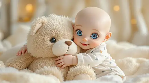 7 months ago a beautiful and (cute alien baby ) with topaz color eyes, wearing a silk white adorable pyjamas, hugging and playing with a plush animal, the plush animal is much larger than the babie, set against a soft, cream and white tone background that adds warmth and coziness to the scene, the atmosphere is very charming, and full of love and happiness, uhd beautiful details and textures, perfect image characters photorealistic quality 91e1b4b2a90 PRO 1 38