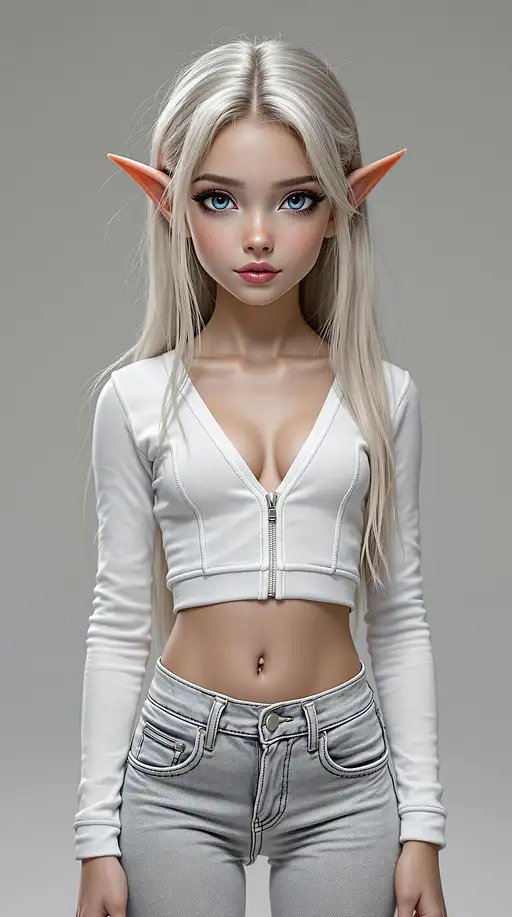 a professional photo of a exceptionally beautiful girl in the world (age 11), (eleven year old) skateboard girl highly detailed, futuristic, (futuristic), (masterpiece), (realistic), (perfect anatomy), (Full body from head to knees), (facing the viewer) with long platinum light brown, beautiful olive skin, thick black eye liner, extra long eye lashes, light pink blush, extremely beautifully shaped lips with light pink lipstick, dark blue eye shadow, perfectly flawless skin, beautiful perfect high cheekbones beautiful perfect high cheekbones extremely detailed large perfectly shaped beautiful brilliant Forest Tea blue-brown-red-golden-grey-purple bedroom eyes, beautifully manicured long fingernail with red polish, dressed in a white cut off crop top, tight white leggings, and white sneakers, standing in a skateboard park, skateboard between her feet, with a dreamy look on her face, <lora:midjourney_whisper_flux_lora_v01:1>Steps: 20, Sampler: Euler, Schedule type: perfect graphics Simple, CFG scale: 1, Distilled CFG Scale: 3.5, Model hash: d3532ec6fd, Model: flux1DevV1V2Flux1_flux1DevBNBNF4V2, Lora hashes: "midjourney_whisper_flux_lora_v01: ee64e90efc4d", Version: f2.0.1v1.10.1-previous-501-g668e87f9, Module 1: t5xxl_fp16, Module 2: clip_l 8k, (high res), ultra-detailed, photo-realistic, full image view, full body view, front view, highly detailed, volumetric, dramatic lighting