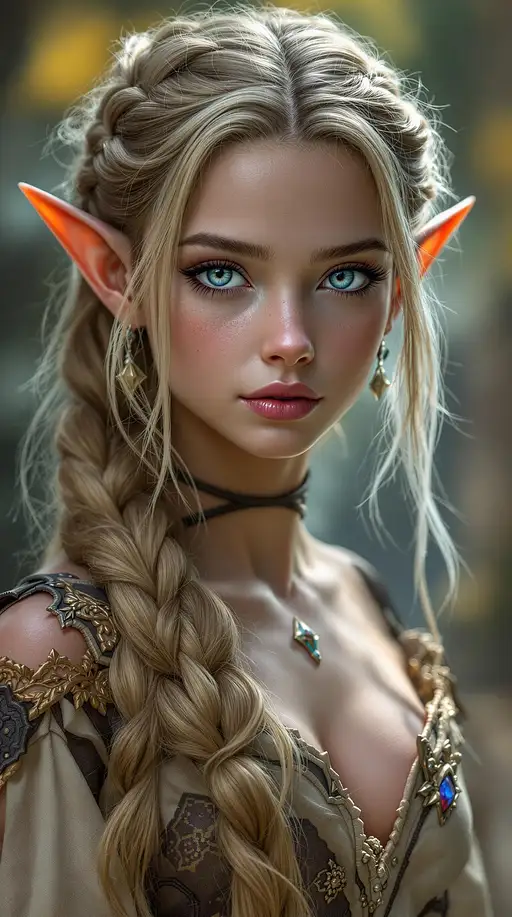 djrny-v4 style, score_13, score_28_up, score_37_up, a professional realistic photo of a (age 11) most beautiful short eared elf girl in the world, in a highly detailed, (flawless anatomy), (masterpiece), (realistic), (viewing full body), (facing the viewer) with extra long, extremely long thick chestnut blonde hair rope braid, beautifully flawless olive skin, thick black eye liner, extra long eye lashes, light pink blush, extremely beautifully shaped lips with light pink lipstick, black eye shadow, beautiful perfect high cheekbones beautiful perfect high cheekbones extremely detailed perfectly shaped beautiful brilliant Forest Tea blue-brown-golden-grey-purple eyes, beautifully manicured fingernail with pink polish, dressed in style World of Warcraft blood priestess, moving through eleven palace , magical, mystical, high depth of field, gentle expression, created with Unreal Engine 5 and Octane Render, high resolution photography, intricate details, ultra-sharp focus. --v 6.1 (best quality, 8k,high res,masterpiece:1.2),ultra-detailed, (realistic, photo realistic, photo-realistic:1.37), (high res),ultra-detailed, photo-realistic, front view, highly detailed, volumetric, dramatic light Perfect graphics, ultra-detailed, photo-realistic, full image view, full body view, front view