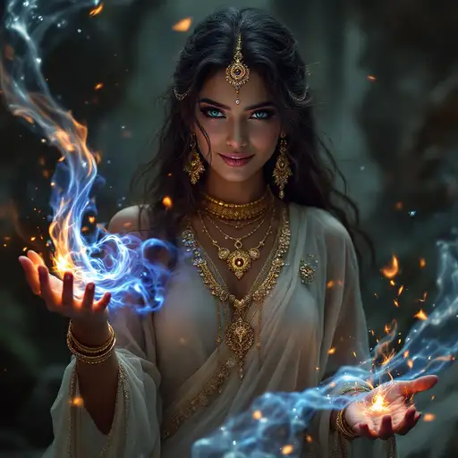 emphasizing her enchanting blue eyes and captivating smile prompts