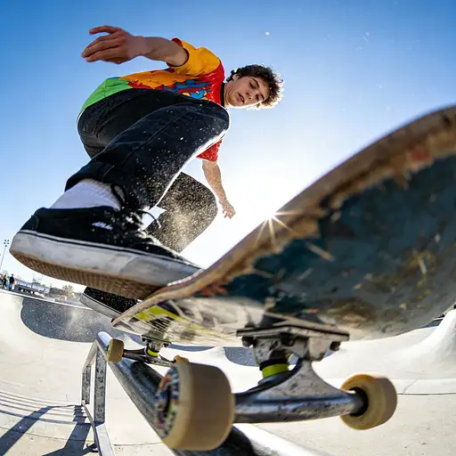 A full-body, ultra-realistic, dynamic low-angle street-style photo of a young Japanese woman in her early 20s. She is sitting casually on wide, outdoor concrete steps in Tokyo. She is looking confidently at the camera with a neutral expression. She has straight black hair with classic bangs. Her outfit consists of a fashionable mustard-yellow, long-sleeved blouse with a subtle dark floral print and billowy sleeves, paired with flowy, wide-leg black trousers. The background is dominated by the iconic Tokyo Skytree, shot from its base to emphasize its towering height and intricate white lattice structure against a bright, slightly hazy sky. To the right of the subject is a modern, minimalist concrete wall with a sleek metal handrail. Photography Style: Camera: Shot with a DSLR, wide-angle 24mm lens, f/4 aperture to keep both the subject and the tower relatively in focus. Angle: Extreme low-angle shot, looking up. Lighting: Bright, natural, diffused daylight of an overcast day, creating soft shadows and vibrant colors. Composition: Asymmetrical composition, rule of thirds, with the woman on the lower right and the tower filling the left side. Strong leading lines from the stairs and handrail. Color Palette: A contemporary color scheme with the vibrant mustard yellow as a key focal point against a background of cool grays, whites, and blues. Mood: Modern, urban, confident, and casual. Details: High resolution, hyper-realistic detail, sharp focus, clear texture on the concrete and clothing fabric.