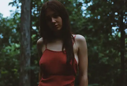 A captivating woman sits in the dimly lit room, her style radiating through every detail of her appearance like a work of art that's been carefully crafted by the finest hands. Her pale skin seems to glow in the soft light, accentuating the dark brunette hair styled in a messy low bun. A few strands fall loose around her face, framing her features and adding a touch of elegance to the scene. Her eyes seem to hold a secret, with smoky colors blending black and violet that add a sense of mystery like a whispered promise that's been shared with no one. A delicate gold bracelet rests on her wrist, shining softly in the dim light like a hint of luxury that's been carefully crafted by the finest hands. A dark-red velvet slip dress clings to her body, revealing just enough to spark curiosity and adding a touch of sensuality to the scene. Thin straps hang loose around her shoulders, seeming to be made for comfort rather than style like a whispered promise that's been shared with no one. Her legs are crossed, one foot tucked under her, barefoot like she's been lounging in the room all day like a secret that's been shared with just one person. Deep burgundy lips seem to hint at a mystery, adding a sense of allure and sensuality to the scene like a whispered promise that's been shared with no one. Soft shadows dance across her face, accentuating the curves of her body and adding a moody atmosphere to the room like a work of art that's been carefully crafted by the finest hands. Every detail of this image feels alive and tangible, like a moment that's been captured at its very best.