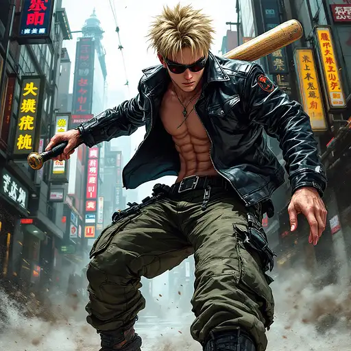 Create an abstract painting where the cybernetic figure emerges from and decays into pure urban filth. The 3/4 pose should barely hold together, disintegrating into a maelstrom of caustic paint effects, chemical burns, and toxic waste. The pink hair should look like it's been dragged through hell - rendered as violent, contaminated streaks that appear to be actively decomposing, with areas where the paint bubbles and splits like festering wounds. Treat the canvas like an abandoned city wall - build up thick, crusty layers of media only to deliberately destroy them. The metallic bra and leather jacket should be buried under decades of grime, suggested only through traces of corroded metal and rotting leather visible beneath layers of industrial sludge. Add thick impasto areas that crack like dried mud, revealing diseased colors beneath. Create regions where multiple paint layers interact violently - separating, bleeding, and creating chemical reactions that eat through the surface. The cybernetic elements should look like they're actively decomposing - use techniques like acid etching, rust transfers, and actual material deterioration. Let paint thinner create unpredictable decay patterns. Include areas where metallic paint oxidizes into toxic blooms and where different media repel each other like oil and water, creating leprous textures. The background should feel like a toxic waste dump - incorporate actual dirt, rust, and urban debris into the paint. Use techniques that deliberately destroy the medium: oversaturate areas until the canvas rots, allow metallic elements to oxidize naturally, encourage paint to crack and flake. Add layers of grime using dry brushing with actual ash and dirt. Create effects that suggest chemical spills, acid rain damage, and industrial accidents through caustic color interactions and material decay. The color palette should feel diseased - contaminated pinks that turn gangrenous, metals oxidized to poisonous greens, blacks that break down into putrid browns. Every color should look like it's been soaked in toxic waste and left to rot. Build up texture with actual organic matter - coffee grounds, sand, rust - anything that adds real physical decay to the surface. The entire piece should look like it was created in a contaminated zone - intentionally damaged, corroded, and infected. The paint application should appear desperate and uncontrolled, as if the artist's tools were found in a junkyard. Let accidents and material failures become part of the piece - runs, drips, chemical reactions, and decomposition should all contribute to its apocalyptic aesthetic.