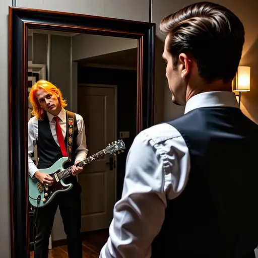 "Create a meticulously staged cinematic scene with rigid symmetry and frontal, low-angle framing, emphasizing a diagonal composition (45-degree tilt) where all elements align along a single dynamic axis. Color Grading: 60% Dominant: Soft, powdery pastel pinks (Pantone 12-1109 TPX "Marshmallow") saturating the sky, snow, and TV casing. 30% Secondary: Frosted teal blues (HEX #6ECEDA) in the glacial lake, aurora, and TV screen static. 10% Accent: Mustard-yellow (Pantone 15-0950 TPX "Golden Glow") in the aurora streaks, wool tufts, and corroded metal knobs. TV Design: A 1950s Bakelite TV (matte eggshell plastic with hairline cracks) tilted diagonally (top-left corner at 10 o’clock, bottom-right submerged at 4 o’clock). Crack: A jagged diagonal fissure (2cm wide) splits the screen from top-left to bottom-right, leaking viscous, neon-bright color bar pigment (RGB values: pink #FF9EB5, teal #5FDAC3, gold #FFD700) that pools into the water below. Materials: Body: Faux-weathered plastic with chipped edges revealing rusted steel underlayers. Details: Three rotary knobs (tarnished brass, 4cm diameter) labeled "VOL," "TUNE," "POWER." Cables: Braided wool cords (undyed cream yarn, 3cm thickness) coiled around the TV’s base, fraying at the ends. Screen Imagery: Static Overlay: A 1953 RCA-style color bar test pattern (8 vertical bands) glitching every 2 seconds, causing the teal and pink bars to "melt" downward into liquid with the word "Prompthero" barely visible on it. Underlying Image: A faint, glowing topographical map (golden-yellow lines on indigo) dissolves into water that cascades from the screen’s crack, merging with the glacial lake. Environment: Glacial Lake: Semi-frozen water (translucent teal, 70% opacity) with jagged ice shards (20cm height) encircling the TV. Snowfall: Heavy, dense snowflakes (1cm diameter) falling at 45 degrees, accumulating on the TV’s top-left corner. Aurora Borealis: Three parallel bands (pink #FFB3D1, teal #7FE5E5, gold #FFE44D) in smooth sine waves, 15° tilt, 80% opacity. Sky: Ultra-high-contrast starfield (ISO 51200 noise pattern) with 2,000 visible stars (randomized 2-4px white dots). Lighting & Effects: Key Light: A frontal, low-orange sodium vapor lamp (3200K) casting sharp diagonal shadows (20° angle) from the TV onto the ice. Bloom: Halation around the aurora and screen, radius 15px, intensity 70%. Textures: Film Grain: 35mm Kodak Vision3 250D overlay (gritty, high-detail). Lens Defects: Two hairline scratches (1px width) at 15° and 75° angles, plus hexagonal lens flare (60% opacity) from the aurora. Physics & Motion: Water: Viscous fluid dynamics—the leaking color bars swirl in 5cm eddies, blending with the glacial lake. Wool: Submerged yarn floats upward in 10cm tufts, swaying at 0.5Hz frequency. Result: A hyper-detailed, reference-free scene that implicitly channels Wes Anderson’s aesthetic through obsessive symmetry, retro-kitsch materials, and a strict 60/30/10 pastel hierarchy—no director named, all style embedded in granular technical specs.