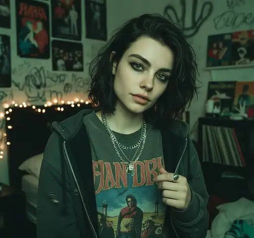 Woman (ethnicity:1.2), (age:20-25), (body type:slender), (pose:sitting), (detailed clothing:1.2), (accessories:1.1), (expression:smiling), (facial features:1.3), in a deep red mini dress with laced bodice, (detailed skin texture:1.2), with long sleeves and a plunging neckline. She's wearing high red suede boots (detailed laces:1.2), with a silver pendant necklace (accessories:1.1). Her brown hair is styled in a loose updo. She is seated on a dark, wooden stool (detailed wood grain:1.2), positioned slightly angled right in the frame. The background features rustic wooden walls, warm-toned lighting, and blurred Edison bulbs (detailed filament bulbs:1.1), creating a vintage ambiance. The image has a photorealistic style, capturing the richness of the red tones and the softness of the skin (detailed hair texture:1.1). The lighting is focused on the subject, creating a dramatic effect with some soft shadows. The composition is from a slightly low angle, emphasizing the woman's legs and attire, with a warm color palette. The focus is sharp on the woman's face and body, with the background gradually fading into a blurred backdrop.