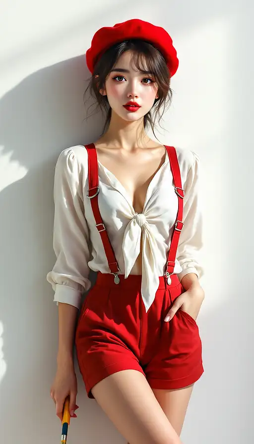 [Image Type: Ultra-realistic color photograph / Highly detailed realistic oil painting / High-resolution digital portrait] of Marie Curie. Facial Details: Face Shape: Oval-shaped, with slightly prominent cheekbones and a soft jawline. Skin Tone: Fair complexion with a subtle rosy undertone, showing natural skin texture and pores. Fine expressive lines are visible around the eyes and mouth, and subtle horizontal lines on the forehead (especially in older depictions). Hair: Color: A blend of light grey, silver, and pale blonde, with remnants of subtle underlying light brown strands. In younger depictions, the hair would be light brown or dark blonde. Style: Neatly gathered into a loose bun, chignon, or "messy updo" at the back of the head, with soft, wispy strands framing the forehead and temples. In younger images, the hair might be fuller around the head or styled upwards. Eyes: Color: Pale light blue or blue-grey, with a calm, discerning, and deep gaze, reflecting intelligence and seriousness. Shape: Almond to slightly round, with slightly prominent upper eyelids. Eyelashes and Eyebrows: Sparse eyelashes; eyebrows are thin to medium, naturally arched, and light-colored (tending towards grey/blonde), neatly groomed. Nose: Straight, medium-sized, with a slightly rounded tip, defined by soft shadow lines. Mouth and Lips: Medium-full lips, natural rosy-pink color, often closed with a calm or serious expression. Fine lines may appear around the mouth (especially in older depictions). Chin: Rounded and soft, proportionate to the face shape. Distinguishing Features: A subtle dimple on the chin may be present. Her facial expression conveys focus and deep thought. Body and Clothing Details (if more than the face is included): Body Build: Neck, shoulders, and upper chest are visible. Clothing: Often depicted in simple, practical attire typical of her era, such as: A dark-colored (black, navy, or dark brown) dress or jacket made of a dense fabric. Details like a high white collar, a decorative collar (as in younger photos), or simple lace embellishments on the shoulders or sleeves may be present. A simple, thin necklace with a small pendant (could be a locket or a bar-shaped pendant). Background and Lighting: Background: Simple, often a plain neutral-colored wall (grey, beige, light brown) or a softly blurred, indistinct background, with gentle color gradients providing depth without distraction. Lighting: Soft, even lighting illuminating the face, with very subtle shadows highlighting features without being harsh. The light source might be from the front or slightly to one side. Overall Mood/Feeling: Calm, serious, contemplative, and confident expression, reflecting her intelligence and profound thinking. ```
