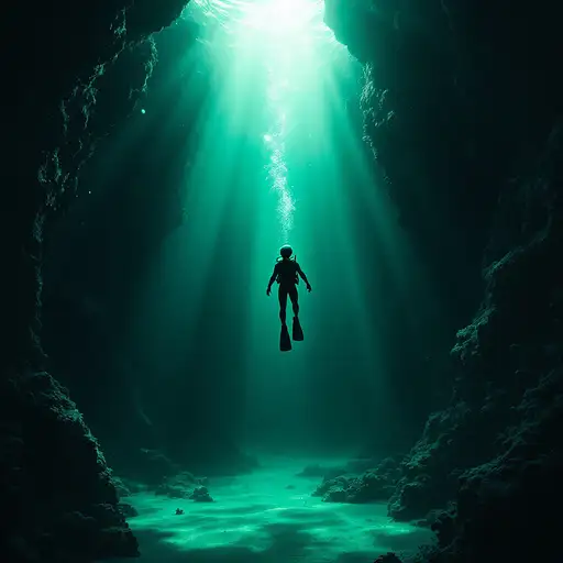 7 months ago emerald color serene underwater scene depicting a lone diver alien, floating gracefully in a beam of sunlight penetrating the dark emerald ocean, mystery of the sea, rendered in a realistic style that captures the tranquil yet awe-inspiring nature of underwater exploration --ar 9:16 41fcf245531 2 42