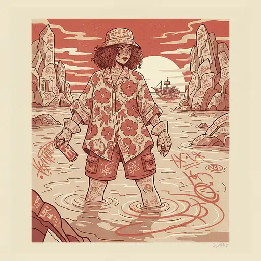 9 months ago a woman stands in the water, in the style of light beige and red, hustlewave, vacation dadcore, tagging and marking, handcrafted beauty, bold curves, heistcore --ar 63:128 --personalize 2gwf1qc --stylize 750 --v 6.1 1a1a4f64d4a 0 40