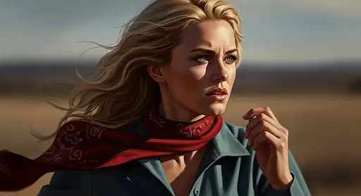 3 months ago full color photograph of blond women running, in the style of intense gaze, hauntingly beautiful, richly layered, expressive eyes, western-style portraits, loose and fluid style --ar 73:111 --stylize 750 --v 6 MarcusD PRO 0 6
