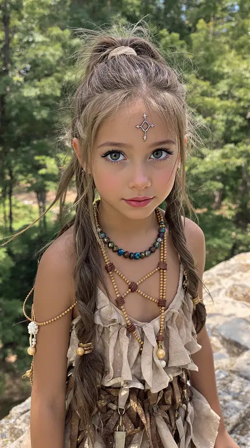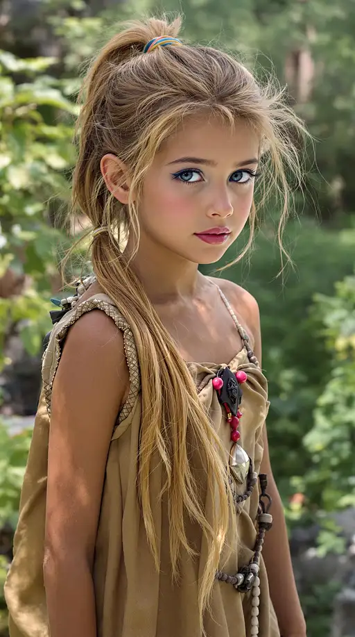 with extremely long Dark Caramel Blonde hair tied back into a pony tail prompts