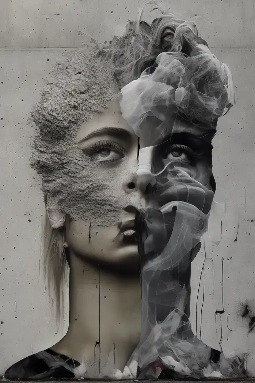 almost 2 years ago Photographie by Michel Comte, ((Paige VanZant)) in the style of cosmic intellectual insult, yakshaganaic ambivalence diffusion, disillusion, chaos, mental refief, dystopitism, gloomy acryl on concrete, mural, trompe l´oei sg3103 0 80