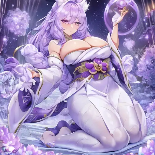 milf japanese gigantic breast, silky silver fur covered in frost, timid, ((insanely detailed alert amethyst eyes, sharp focus eyes)), gorgeous 8k eyes, fluffy silver neck ruff covered in frost, two tails, (plump), extremely beautiful, fluffy chest, enchanted, magical, finely detailed fur, hyper detailed fur, (soft silky insanely detailed fur), presenting magical jewel, moonlight beaming, starry sky, frolicking in frosted meadow, grassy field covered in frost, cool colors, professional, symmetric, golden ratio, unreal engine, depth, volumetric lighting, rich oil medium, (brilliant auroras), (ice storm), full body focus, beautifully detailed background, cinematic, 64K, UHD, intricate detail, high quality, high detail, masterpiece, intricate facial detail, high quality, detailed face, intricate quality, intricate eye detail, highly detailed, high resolution scan, intricate detailed, highly detailed face, very detailed, high resolution digital painting, highly detailed, intricated, intricated pose, clarity, high quality