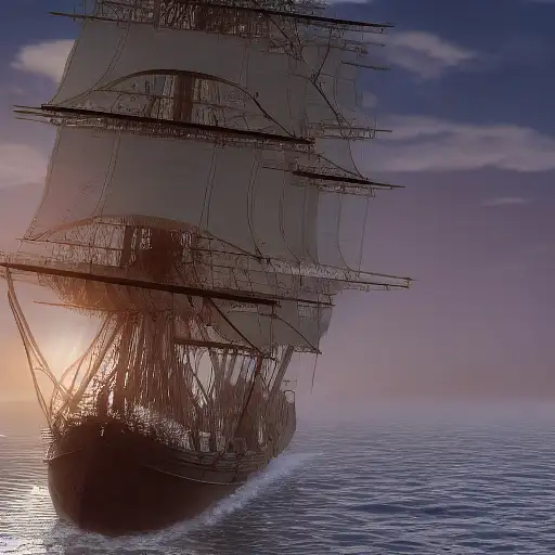 2 years ago Photo of a ultra realistic sailing ship, dramatic light, pale sunrise, cinematic lighting, battered, low angle, trending on artstation, 4k, hyper realistic, focused, extreme details, unreal engine 5, cinematic, masterpiece, art by studio ghibli, intricate artwork by john william turner toqeer 0 150