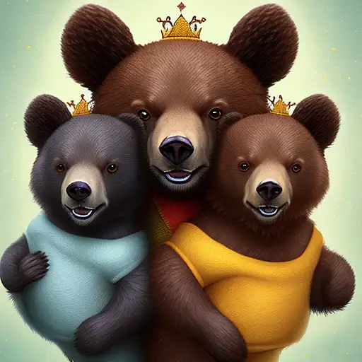 The personification of joy in the form of three little bears with brown hair and the smile of a child, together with a queen bee who wears a crown and smiles flying over the bears(((cute bears and cute bee)))cute shirts , cute cheeks, unreal engine, highly detailed, artgerm digital illustration, woo tooth, studio ghibli, deviantart, sharp focus, artstation, by Alexei Vinogradov bakery, sweets, emerald eyes, for children's stories, matte painting, HQ, 4KNegative indication: bad anatomy, extra legs, extra arms, badly drawn face, badly drawn hands, badly drawn feet, fat, disfigured, out of frame, long neck, poo art, bad hands, bad art, misshapen, gun, double head , flowers, asian, hyper realistic, boy