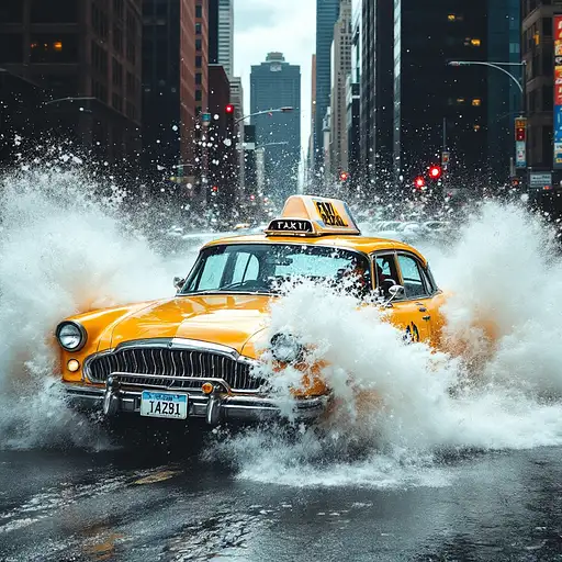 10 months ago a yellow cab car driving throw the water,cool,gowing,--ar,7v 8;75fgt .5qtsjgckba----fwr yauyau 1 19