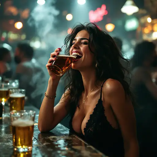 10 months ago drunken young woman in a bar,very drunken look ,smokey Atmosphere,beautiful ,full body,laughting,party scene yauyau 1 17