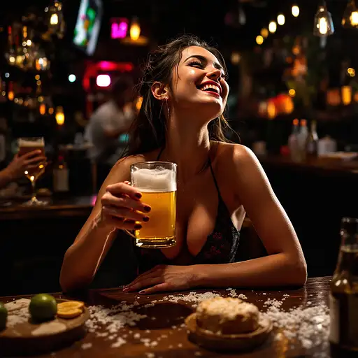 10 months ago drunken young woman in a bar,very drunken look drink a beer, dynamic lights, intricate de, funny,beautiful ,full body,laughting,party scene yauyau 1 11