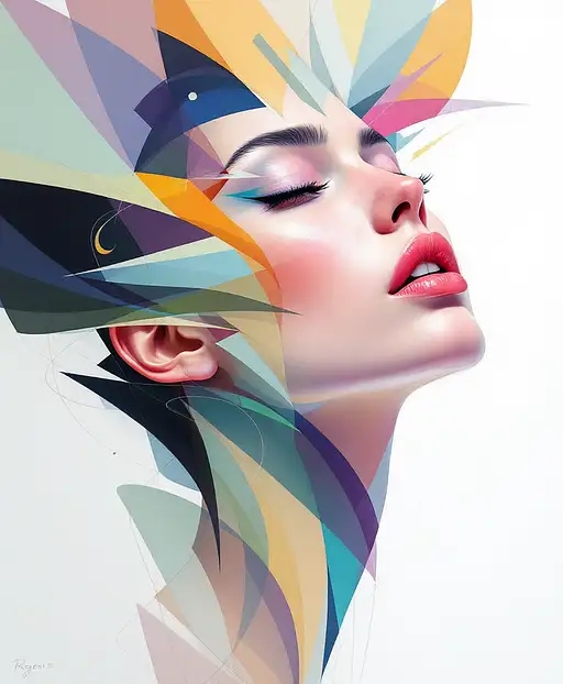 6 months ago a beautiful woman, painting by Lois van Baarle and Greg Rutkowski, Artgerm, beautiful colors, abstract shapes, soft lines, elegant curves, white background, high resolution, surreal, fantasy, geometric abstraction --ar 1:2 --personalize 2gwf1qc --stylize 750 --v 6.1 ymiriofosso 0 37