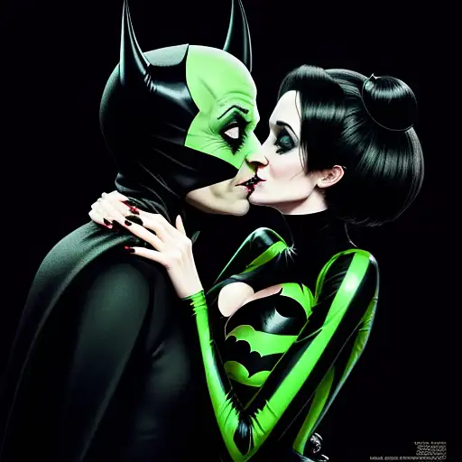 2 years ago beetle juice in a green and black batman costume trying to kiss winona ryder in a goth makeup zoz021 0 17