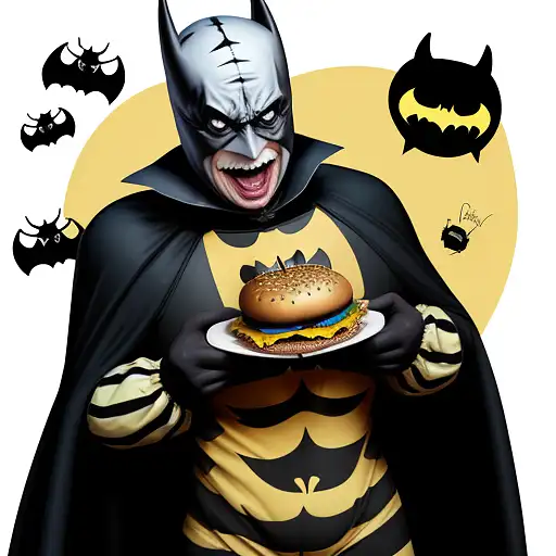 2 years ago beetle juice in a green and black batman costume eating a cheeseburger with beetles zoz021 0 28