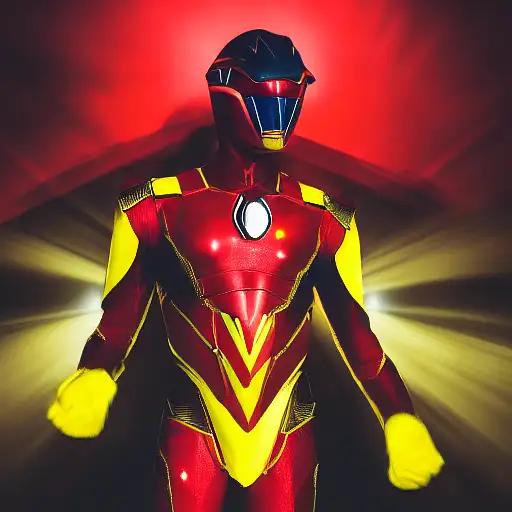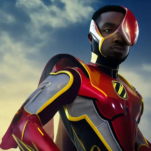 over 2 years ago a blackman in a red and yellow superhero suit in a red power ranger helmet, is holding two sprays in front the midnight sky standing like a superhero zoz021 0 51