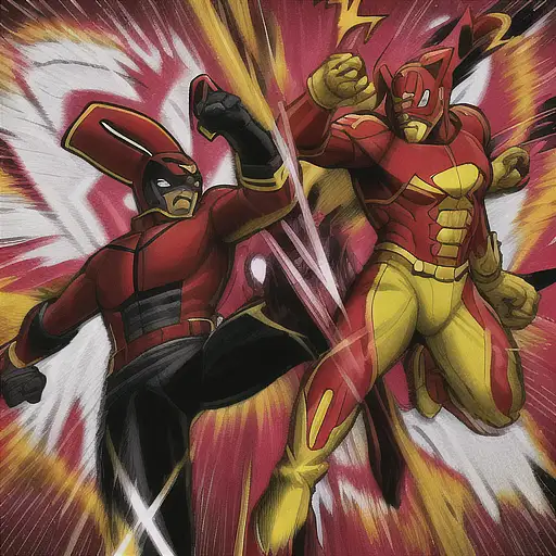 over 2 years ago a blackman in a red and yellow superhero suit fighting a white man in a dog superhero suit, in front of a graffiti wall zoz021 0 54